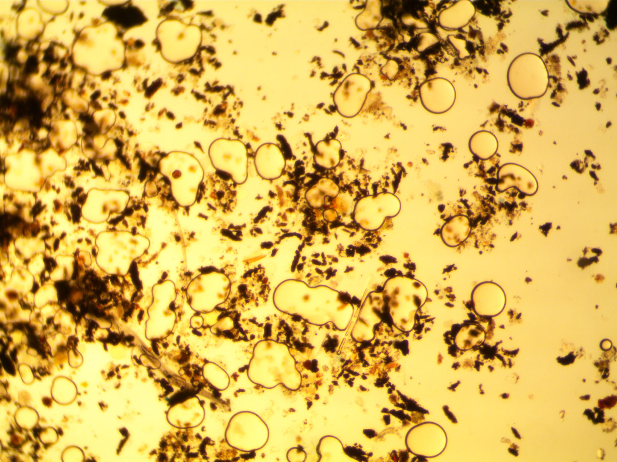 I have collected a number of surface samples from the black deposits for microscopic identification as well as a number of air samples for total spore burden evaluation.
